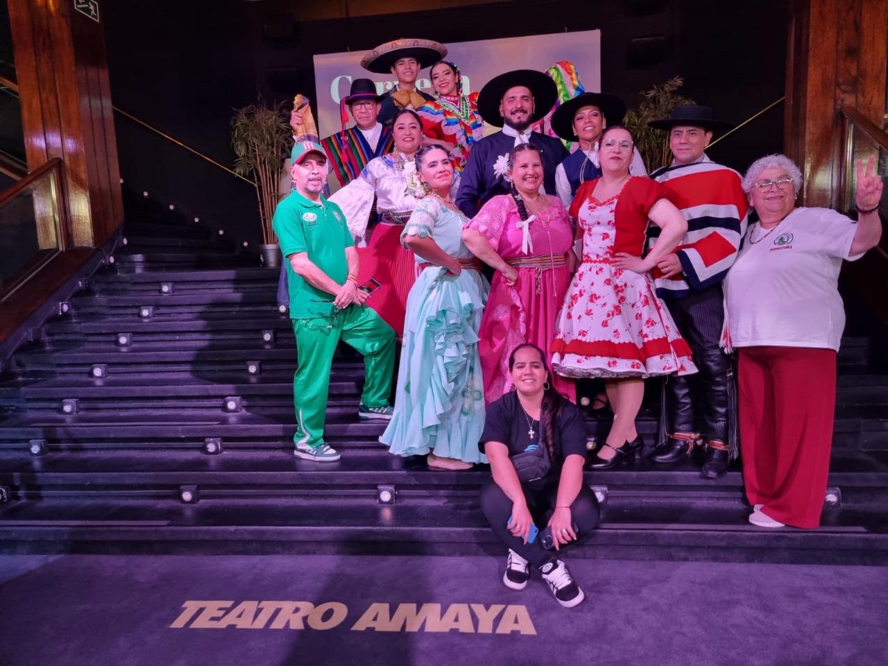 La gala principal se celebró en el Teatro Amaya, con una puesta en escena que desbordó técnica, tradición y emoción. Bajo la dirección del maestro Velarde —egresado de la Universidad de Folclor José María Arguedas—, cada agrupación mostró lo mejor de su repertorio: la cueca chilena, la zamba argentina, las danzas de Jalisco por México, los bailes serranos de Ambato y Riobamba por Ecuador, la danza de las botellas de Paraguay, y un despliegue peruano que incluyó marinera, tondero, festejo, zamacueca, valicha, huayno cusqueño, carnaval de Huancapi y las brujas de Cachiche.